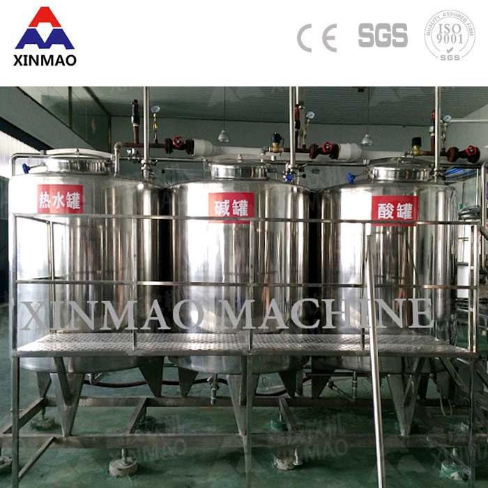 CIP系統通常由酸液罐,堿液罐,熱水罐,加熱器、進程泵和回流泵,以及管路、蒸汽閥組等組成。