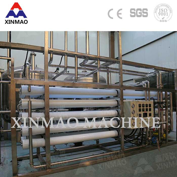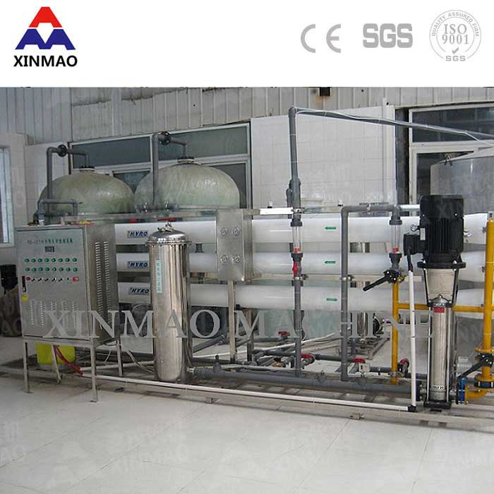 反滲透(簡稱RO)是膜分離技術(shù)的一種,它依靠反滲透膜在壓力下使溶液中的溶劑和溶質(zhì)分離的特性工作。“滲透”是一種物理的現(xiàn)象,逆滲透就是在含有鹽及各種細(xì)微雜質(zhì)的水中(即原水)施加比自然滲透的更大的壓力,使水從濃度高的一方逆滲透濃度低的一方,而原水中絕大多數(shù)的細(xì)菌雜質(zhì)、有機(jī)物、重金屬、細(xì)菌、及其它有害物質(zhì)等都經(jīng)污水口排放。鑫茂機(jī)械專業(yè)生產(chǎn)的