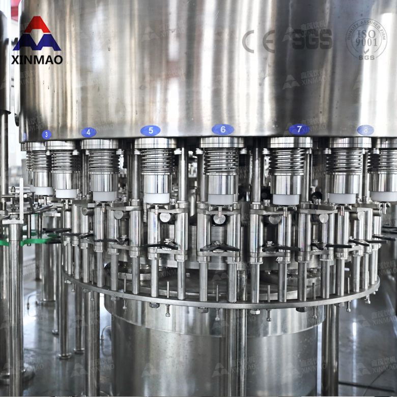 4、灌裝方式:采用新型的微壓灌裝,使灌裝速度更快更穩定,所以與同規格的機器相比本機產量更高,效益更大。