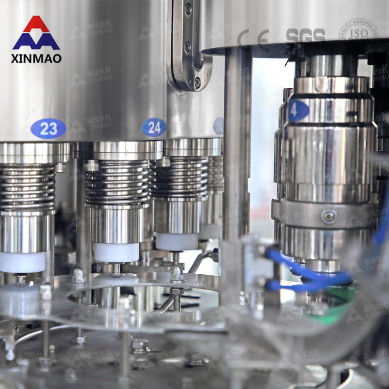 4、PET瓶純凈水灌裝機灌裝方式:采用新型的微壓灌裝,使灌裝速度更快更穩定,所以與同規格的機器相比本機產量更高,效益更大。