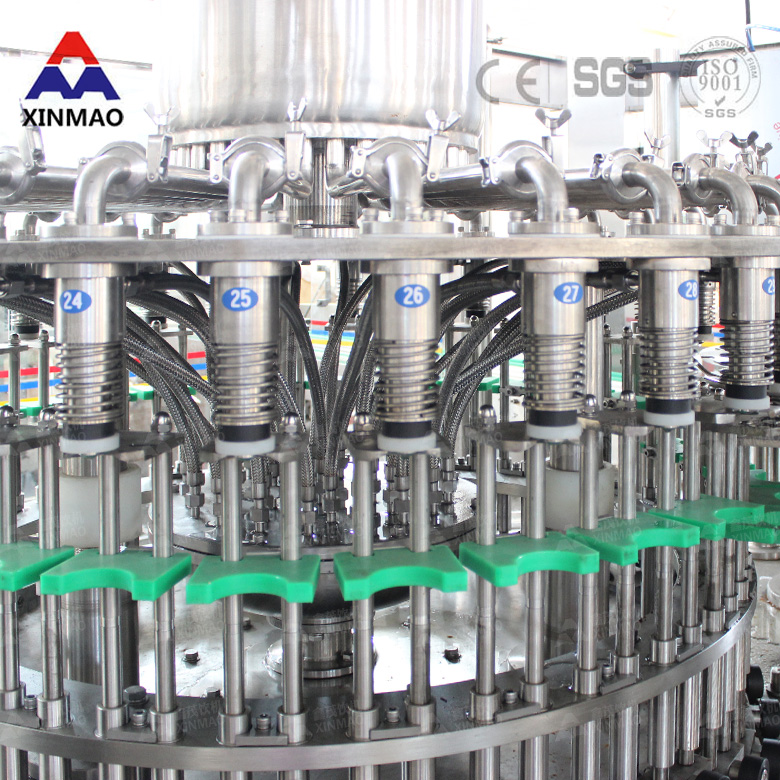 灌裝部分實現將物料灌裝到由沖瓶機送過來的洗好的瓶子中。