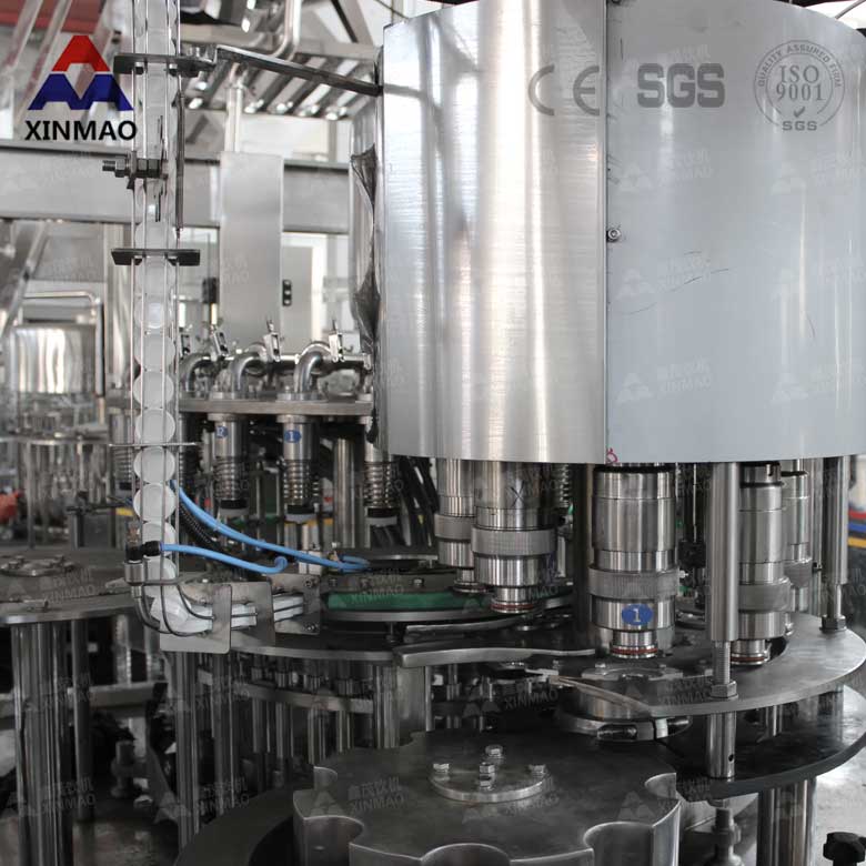 灌裝部分實現將物料灌裝到由沖瓶機送過來的洗好的瓶子中。