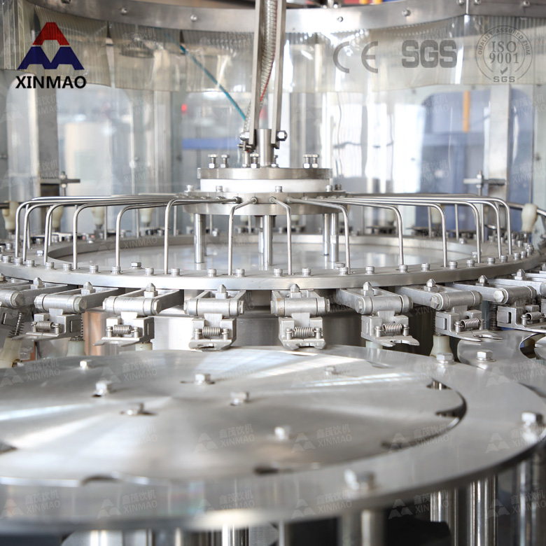 瓶裝礦泉水灌裝機(jī)設(shè)備采用電力和氣動(dòng)混合傳動(dòng)使傳動(dòng)更趨平穩(wěn)配合光電系統(tǒng),整機(jī)集沖洗、灌裝、旋蓋于一體,滿足無缺蓋自動(dòng)送蓋,無蓋不灌裝。瓶裝礦泉水灌裝機(jī)設(shè)備是根據(jù)PLC自動(dòng)系統(tǒng)控制,控制灌裝時(shí)間來實(shí)現(xiàn)不同計(jì)量的灌裝。瓶裝礦泉水灌裝機(jī)設(shè)備同時(shí)適用于多種瓶型的灌裝生產(chǎn),每個(gè)灌裝頭的計(jì)量可以進(jìn)行單獨(dú)調(diào)整,以實(shí)現(xiàn)灌裝計(jì)量的一致。