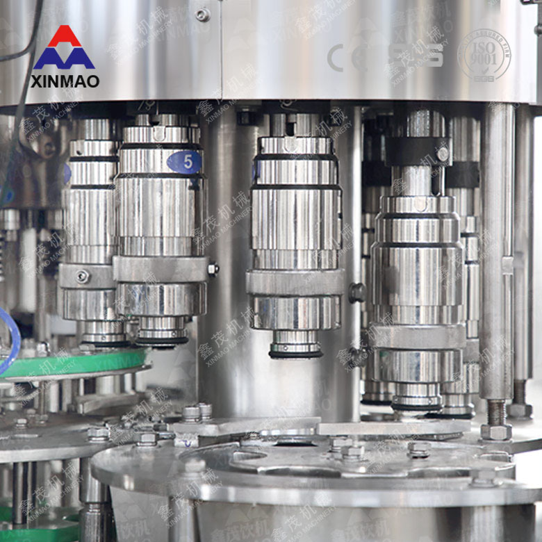飲用水灌裝設備灌裝部分實現將物料灌裝到由沖瓶機送過來的洗好的瓶子中。