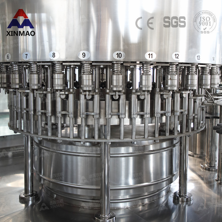 4、灌裝方式:采用新型的微壓灌裝,使灌裝速度更快更穩定,所以與同規格的機器相比本機產量更高,效益更大,